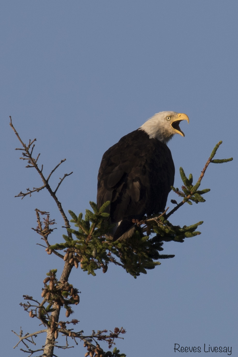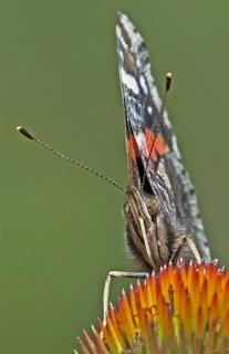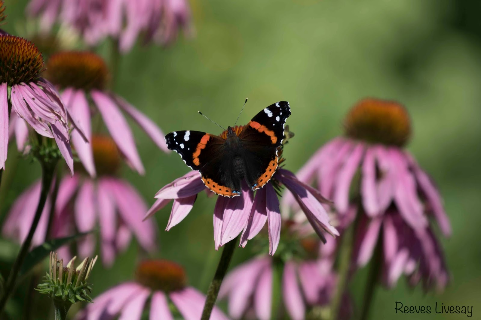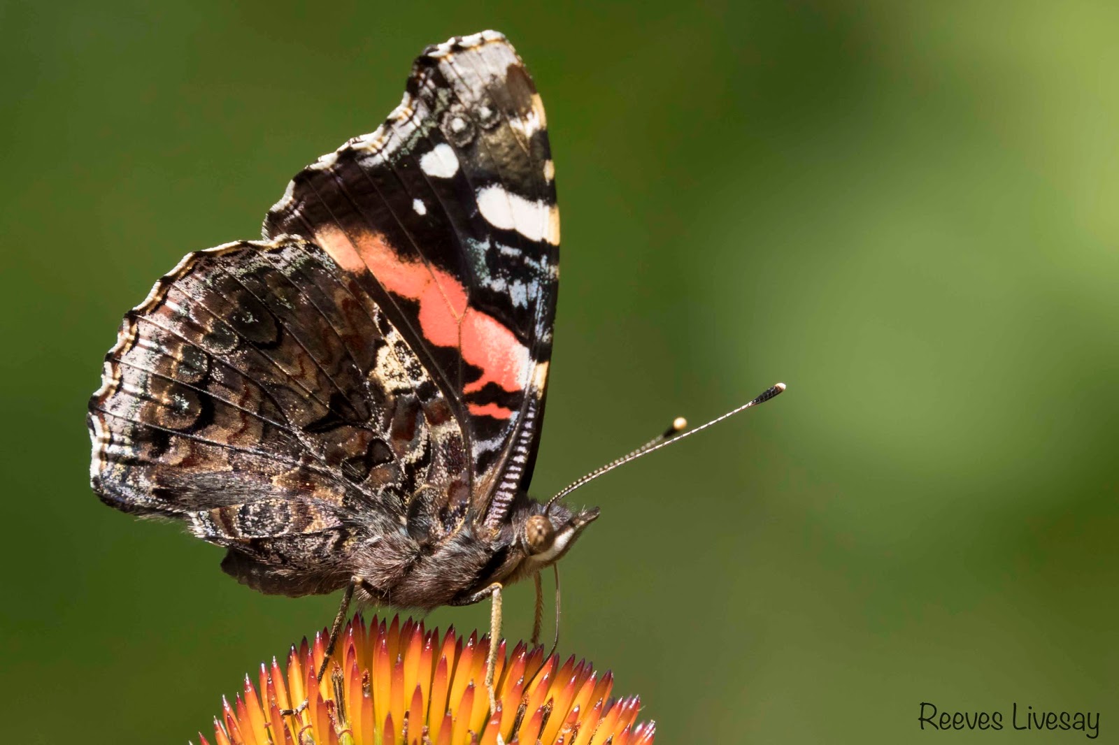 We spotted a Scarlet Tanager skipping from treetop to treetop off the east side of the house. He seemed very disinterested in the swarm of newly hatched flies next to him (seen in the photo below).
